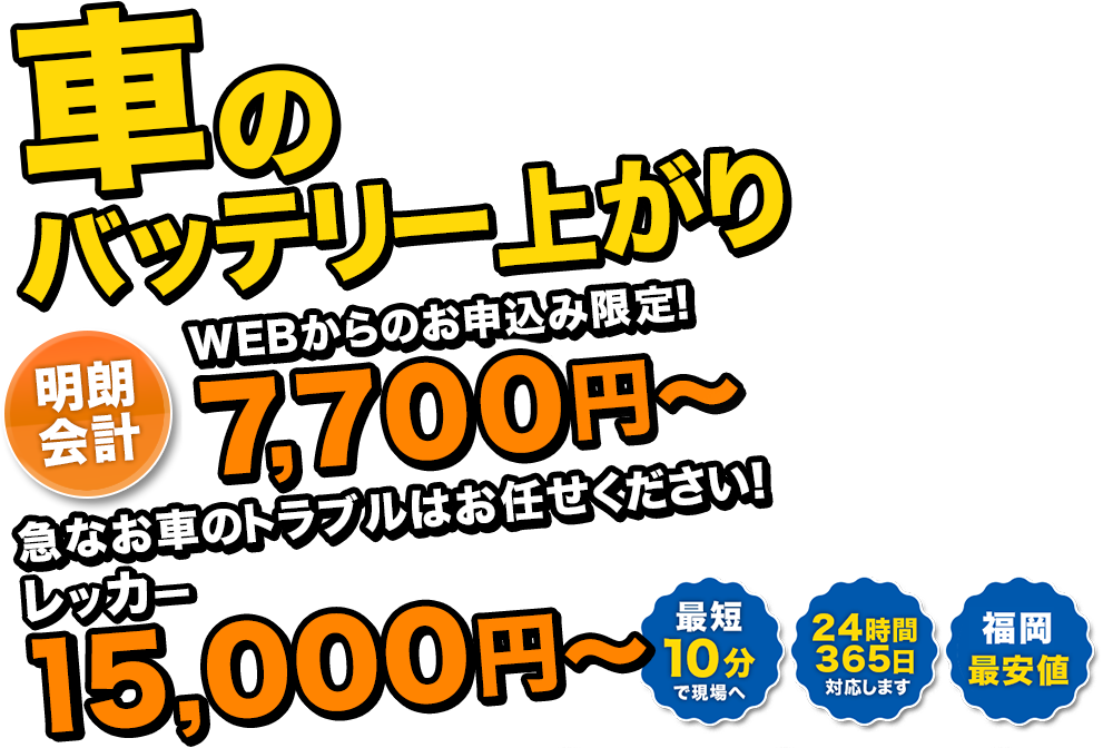 急ぎのお車のトラブルにも24時間365日年中無休ですぐに駆けつけます!